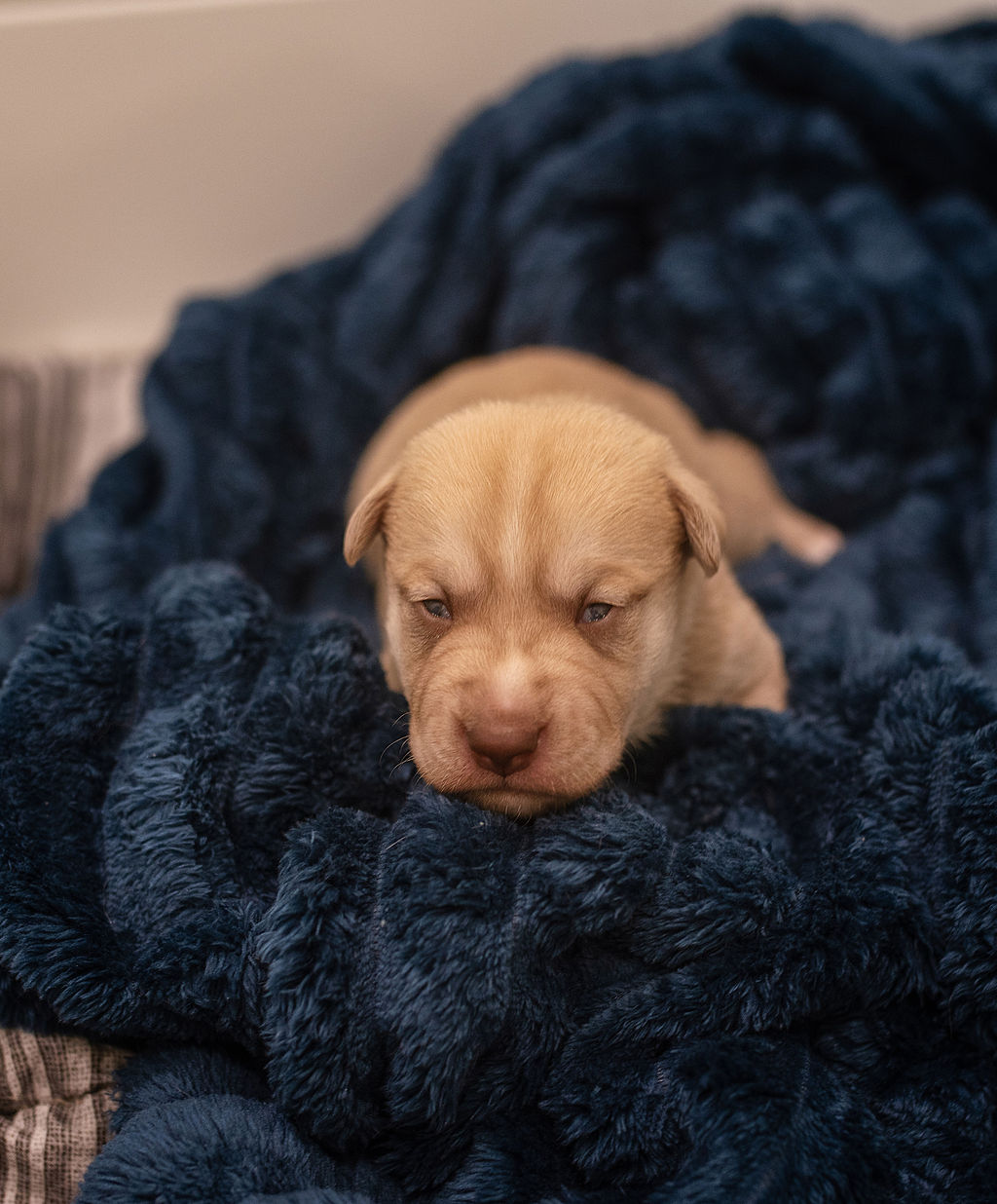 Just born at the beginning of November, the sweet Sunny pups are opening their eyes and beginning to explore the world! Their mom, Sunny, is a loving and playful yellow lab mix. Sage is available for adoption now, and will be ready to take home after 12/29.