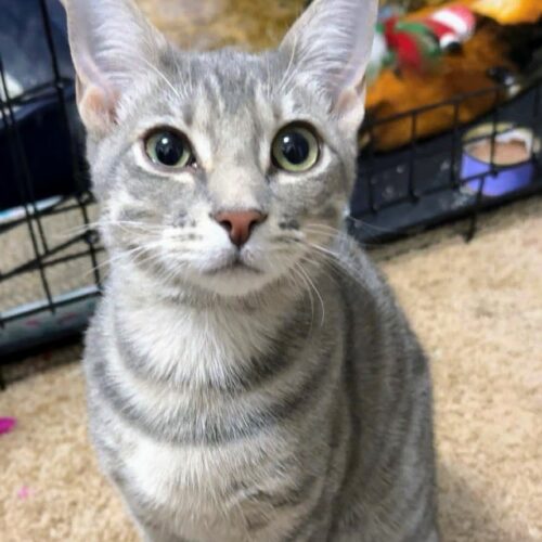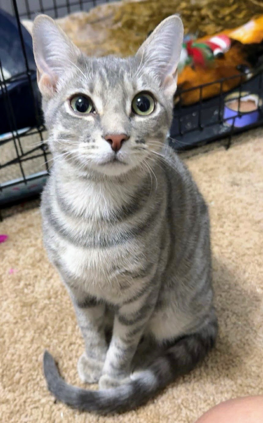 Get ready to be enchanted by Athens, our charming young kitten! He's absolutely full of character and ready to bring a little magic into your life. With a playful spirit, he loves to chase toys with gusto, but don't be surprised if he also enjoys curling up for a long, luxurious nap in a sunbeam. This curious boy offers the sweetest purrs and is always up for a good cuddle. Could Athens be your purr-fect match?