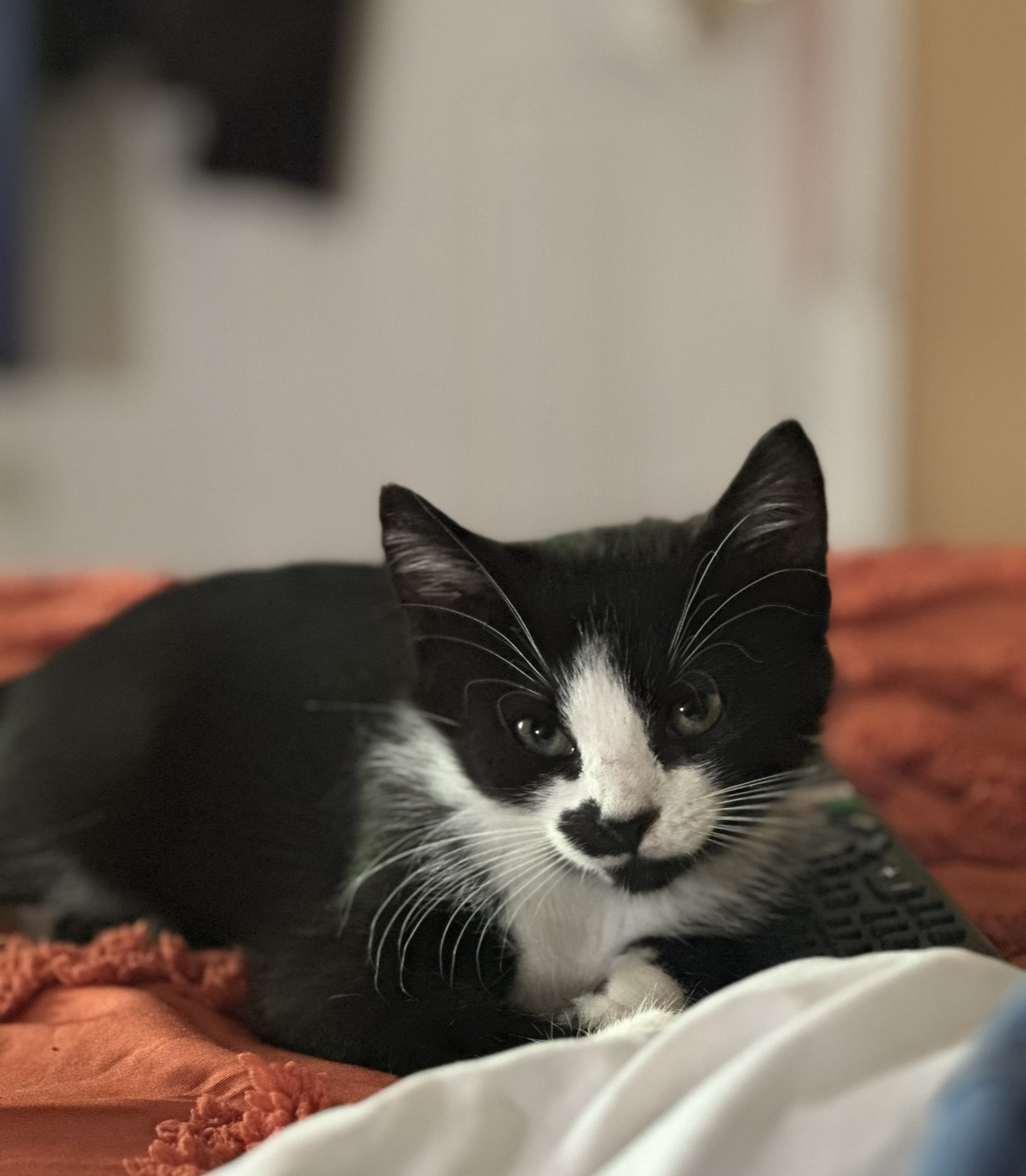 Meet Fern and her sister Gigi, the adorable kitten duo ready to steal your heart! These bonded sisters are pros at meowing their way into cuddle sessions. They're super vocal about wanting your love and will frequent your lap for some rubs. But keep the kisses to a minimum, they're not big fans and will shy away. They’re also not fans of being picked up, they will allow it though (with a squirm here or there).
