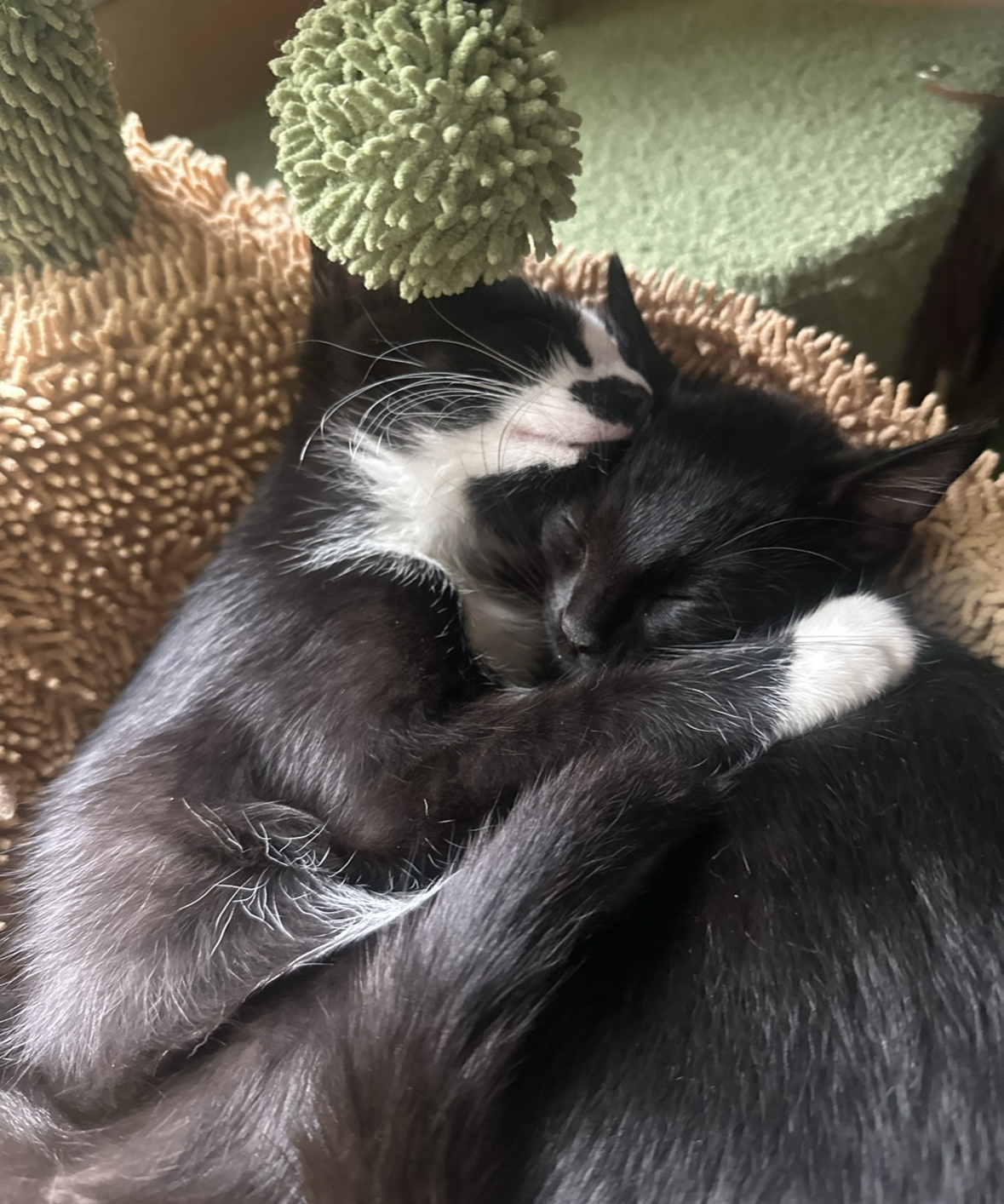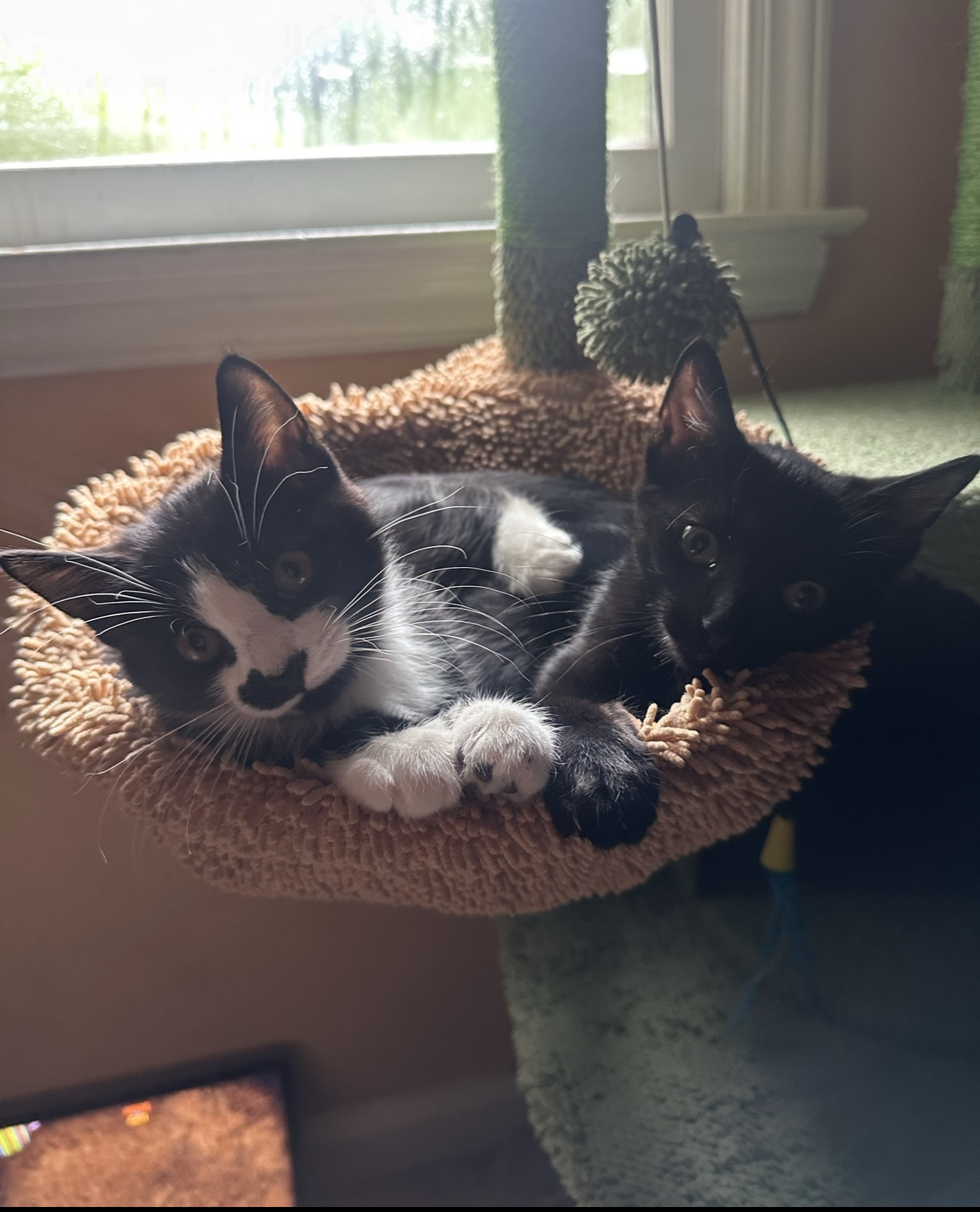 When they aren’t cuddling or trying to sample your snacks, Fern and Gigi love to play! These two are total iPad babies and can spend hours chasing mice on the screen. They also go crazy for a good ole laser pointer and any kind of ball, especially the automatic ones that keep them on their toes.