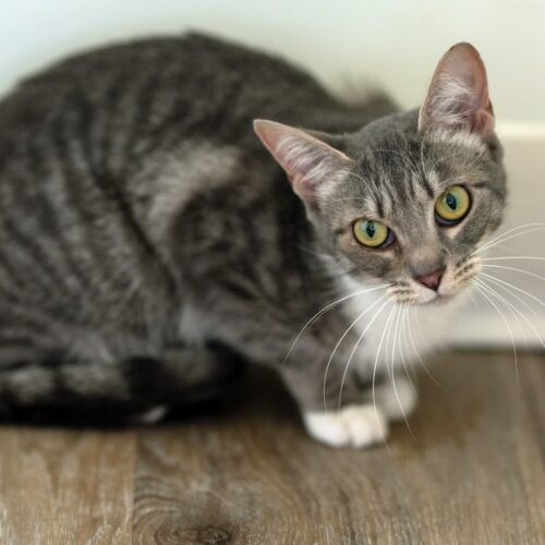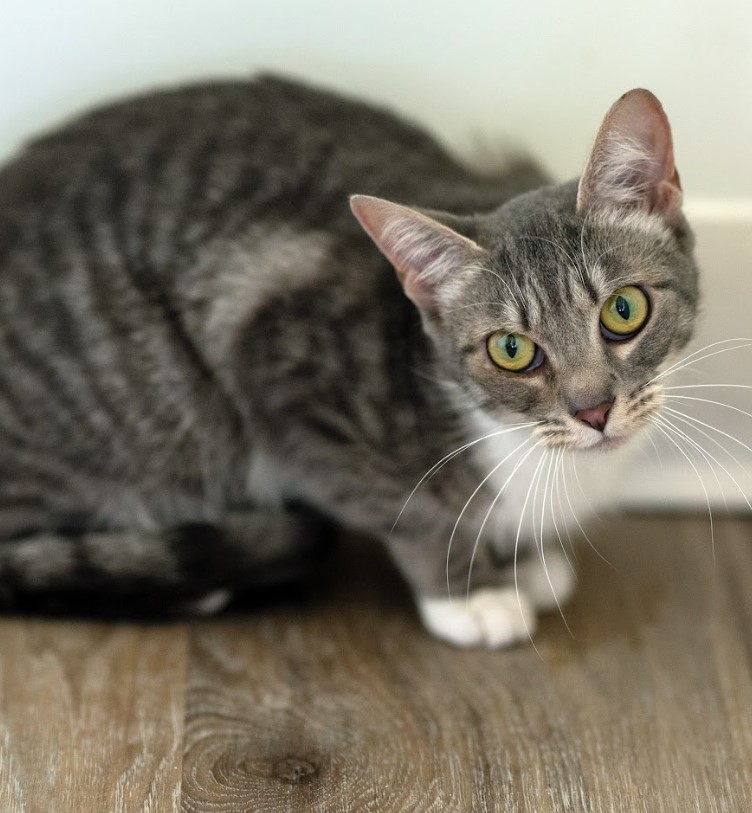 Hi, I'm Grey, and I'm here to tell you about the simple joys of life: naps and snacks! My absolute favorite spot in the world is my foster mom's bed – it's just so cozy. You'll often find me curled up there, dreaming sweet dreams. I'm also a pretty good snuggler, happy to cuddle with my foster mom or even my foster siblings when the mood strikes. Did I mention I love to sleep? Because I really do!