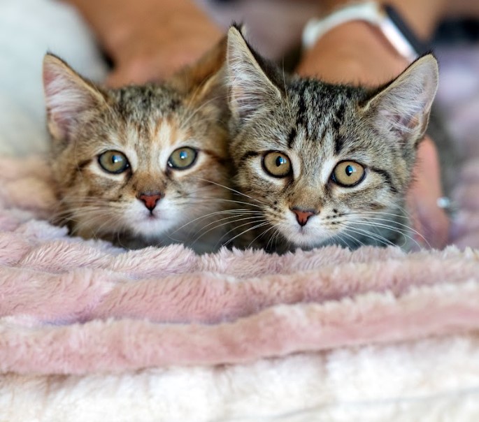 Papaya is a striking little tabby kitty who loves to play with her sibling and cuddle up in your arms at night. Don't miss the antics of Papaya & Plum playing and running around together. What a pair they would make in your forever home!