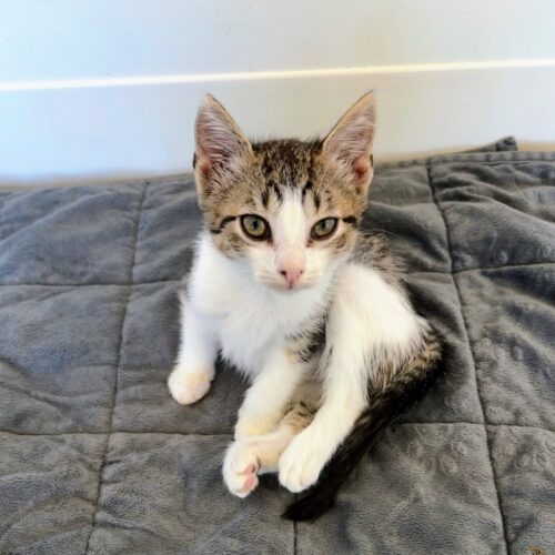 Peg is a sweet kitten who is just trying to keep up with her rambunctious brothers. Come give her some well deserved cuddles at the Sanctuary!