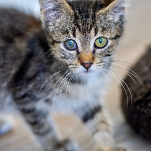 Peppercorn has a great time playing kitten games with his feline roommates but would love a warm spot in your forever home!