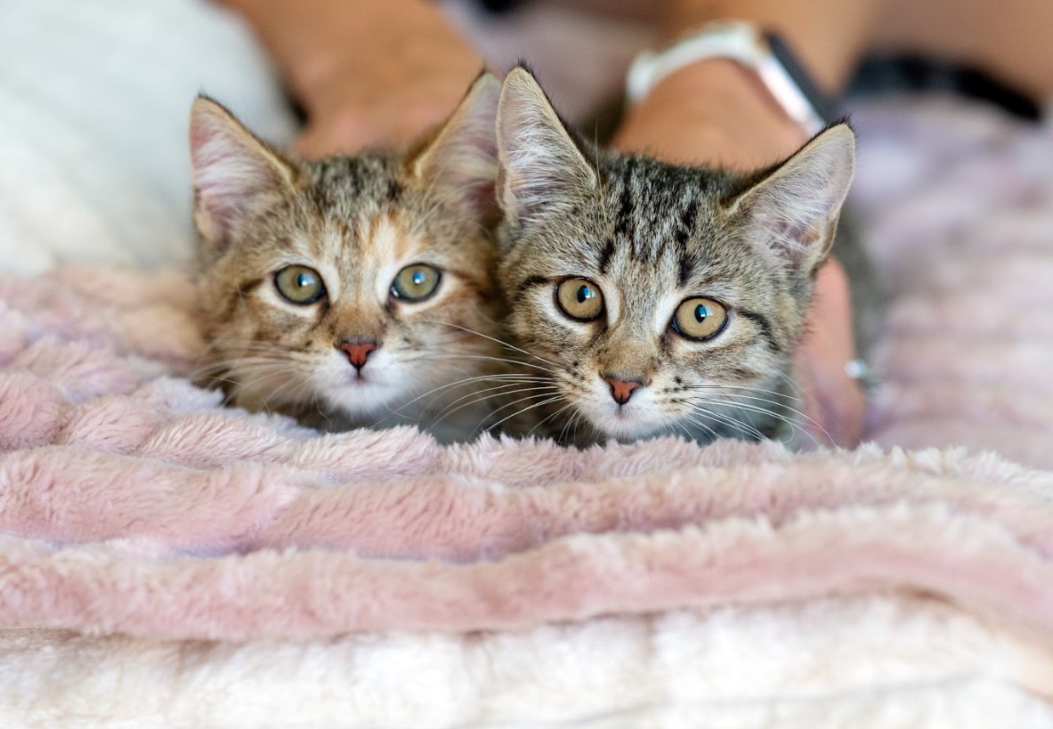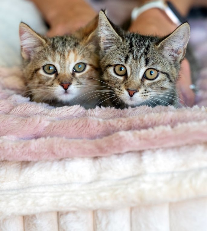 Plum uses every little ounce she has to play and climb and pounce. She was the first to discover jumping and climbing and now that's her preferred method of travel. Why use the door out of the pen when you could have the adventure of climbing out via the wall? When she does (finally) wind down, she purrs happily in your hands. Need a second for this fluff? Check out her sister Papaya!