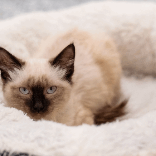 Rumi is a sweet and curious cat looking for a loving forever home. Friendly and affectionate, she enjoys spending time with people and will happily curl up for a nap after a good play session.
