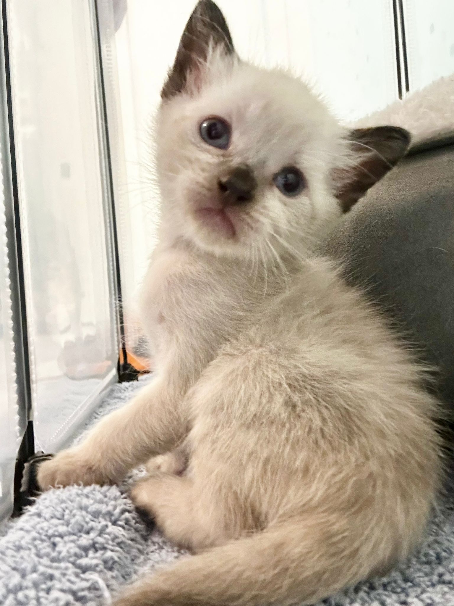 Lady is a sweet and curious cat ready to go to her loving forever home in a few weeks.