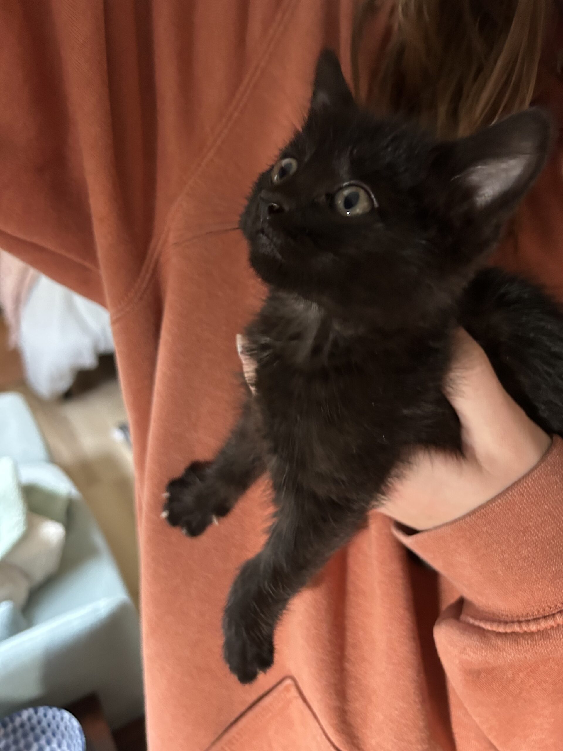 Meet Licorice! Licorice is the sweetest little kitty you’ll ever meet! She adores being held and showered with affection, always purring contently in your arms. When she’s not snuggling, she loves eating and playing, with a definite emphasis on eating! Her playful antics and loving nature make every day brighter. Her forever family will be incredibly lucky to welcome such a sweet, devoted kitty who gives endless love and joy!