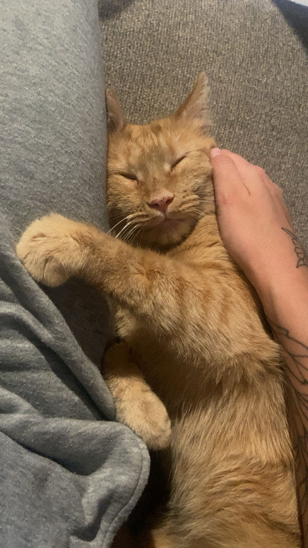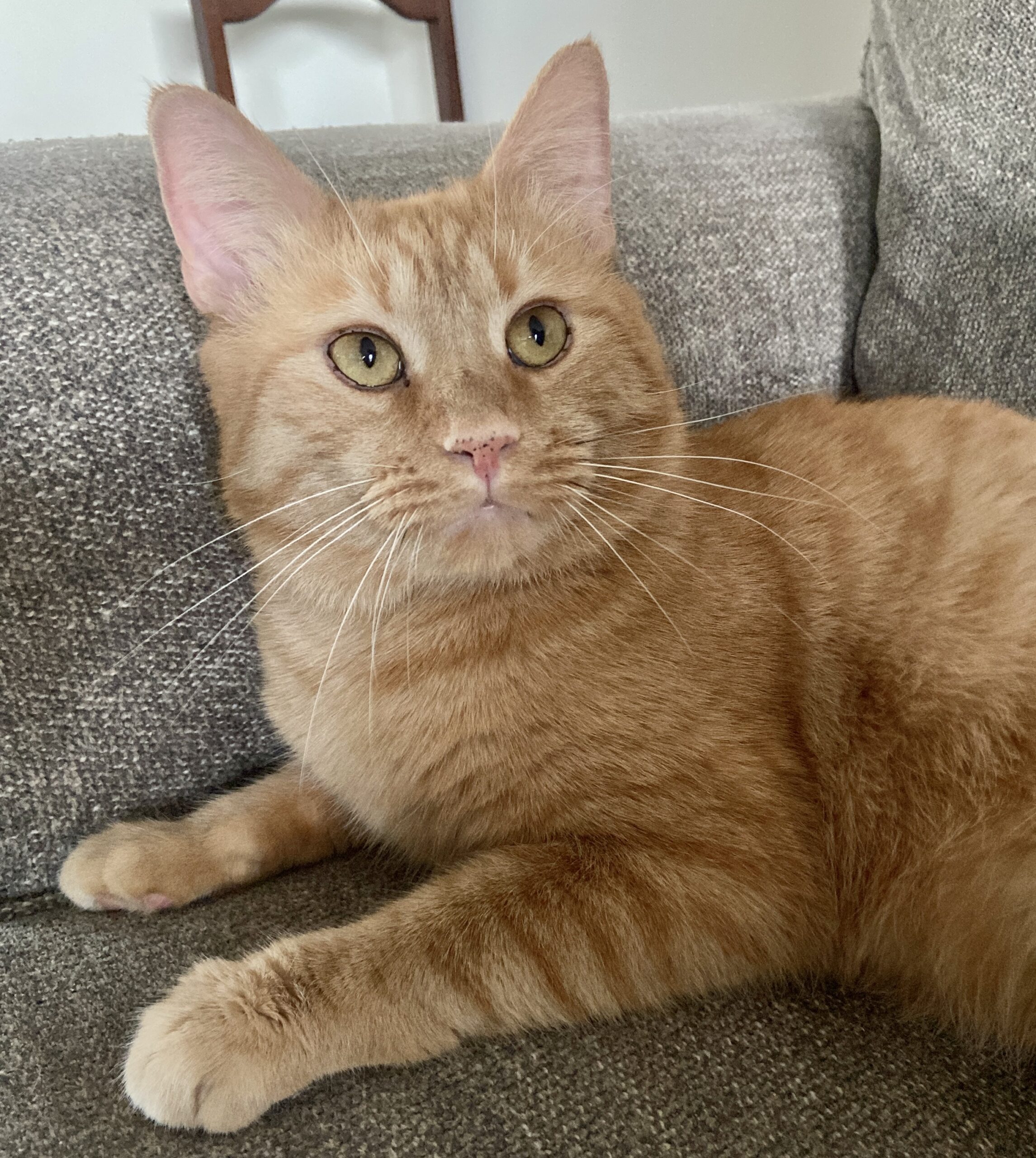 Woody is a sweet gentleman looking for a calm space. He can be a little skittish but he has really come out of his shell and loves to hang out with you and get pets. He gets along with other cats very well and always runs up to headbutt them. He is a sweetheart! Woody has adorable little freckles on his nose that make him irresistable!