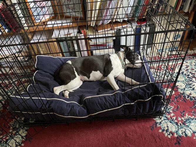 A year after their precious journey together into motherhood, we are finally ready to start looking for homes for them. Annie moved into a new foster home last week, and as you can see in her photo below, she is really starting to relax, enjoying time hanging out with her foster in the office. She will remain there for a while longer to provide her stability and additional time to open up.