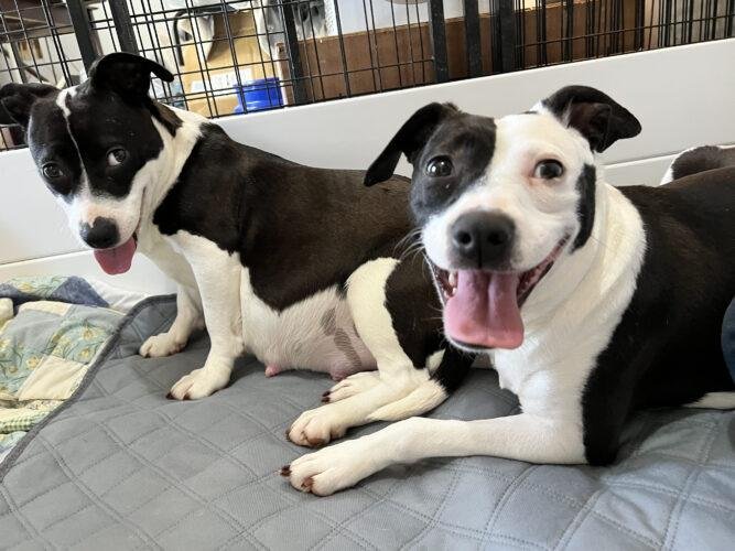 Just over a year ago, we got a call from Bertie County shelter, which had a euthanasia rate of ZERO for 2022, for two very feral and very pregnant dogs. These two sister pups were so terrified that the staff were not able to interact with them, only giving them as much care in their outdoor shelter as was possible.