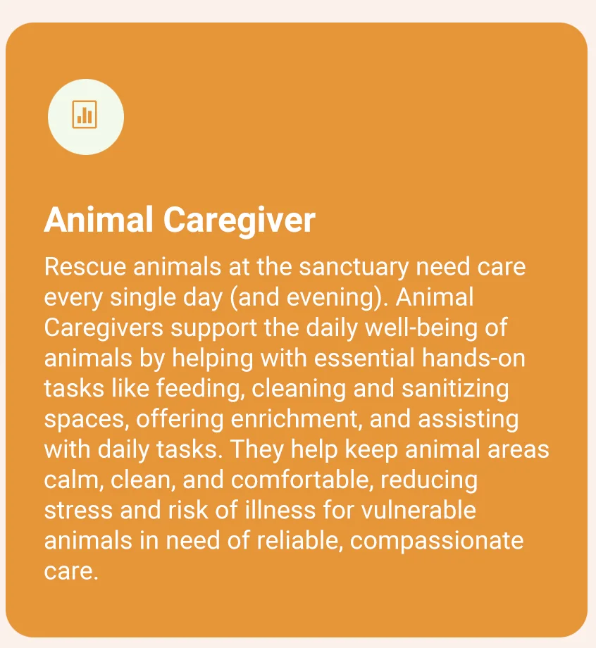 Explore the many ways you can get involved and make a difference! Choose from just some of our volunteer opportunities, listed below, and become part of a deeply caring community that helps animals in need.